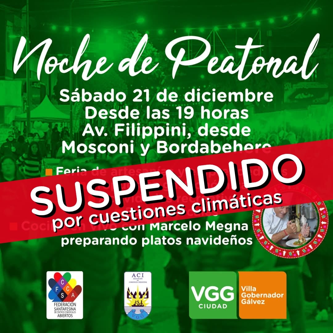«NOCHE DE PEATONAL» SUSPENDIDA. Dic 21, 2024Dic 22, 2024 VGG Noticias La Municipalidad de Villa Gobernador Gálvez y la Asociación de Comercio e Industria informan que, por cuestiones climáticas, la «Noche de Peatonal» en avenida Filippini programada para hoy, sábado 21 de diciembre, queda suspendida. Comparte esta entrada: Compartir en Facebook Compartir en X (Twitter) Compartir en WhatsApp Compartir en Email