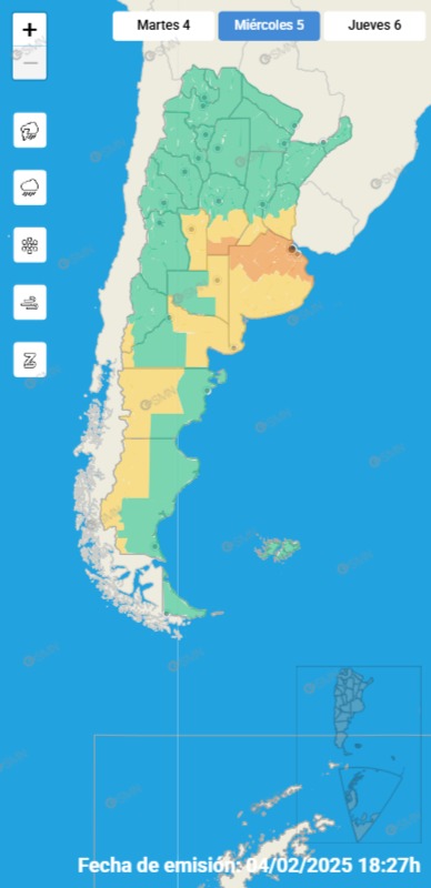 La región será afectada entre esta noche y el mediodía del miércoles 5, por tormentas de variada intensidad. Algunas podrán ser de características fuertes, aisladamente severas. Se esperan intensos chaparrones de lluvia/ocasionalmente granizo. Y ráfagas de vientos muy fuertes. Precaución con la actividad eléctrica, la caída de rayos será frecuente. Dentro de ambiente agradable mejoran las condiciones hacia la tarde de mañana. Retorna el ambiente caluroso, húmedo e inestable desde el jueves 6. Atentos al segundo tercio de este mes, las lluvias podrán ser un problema en algunas zonas, especialmente sobre Buenos Aires. Así las cosas, esperando más conciencia, antes que más números, nos seguimos leyendo. Oscar Monjelat – Director Grupo Caza Tormentas del Sur. Con nuestra gente, siempre!!P.D. Emitido ALERTA AMARILLO oficial, afectando la zona entre la madrugada/mañana del 5/2/25.
