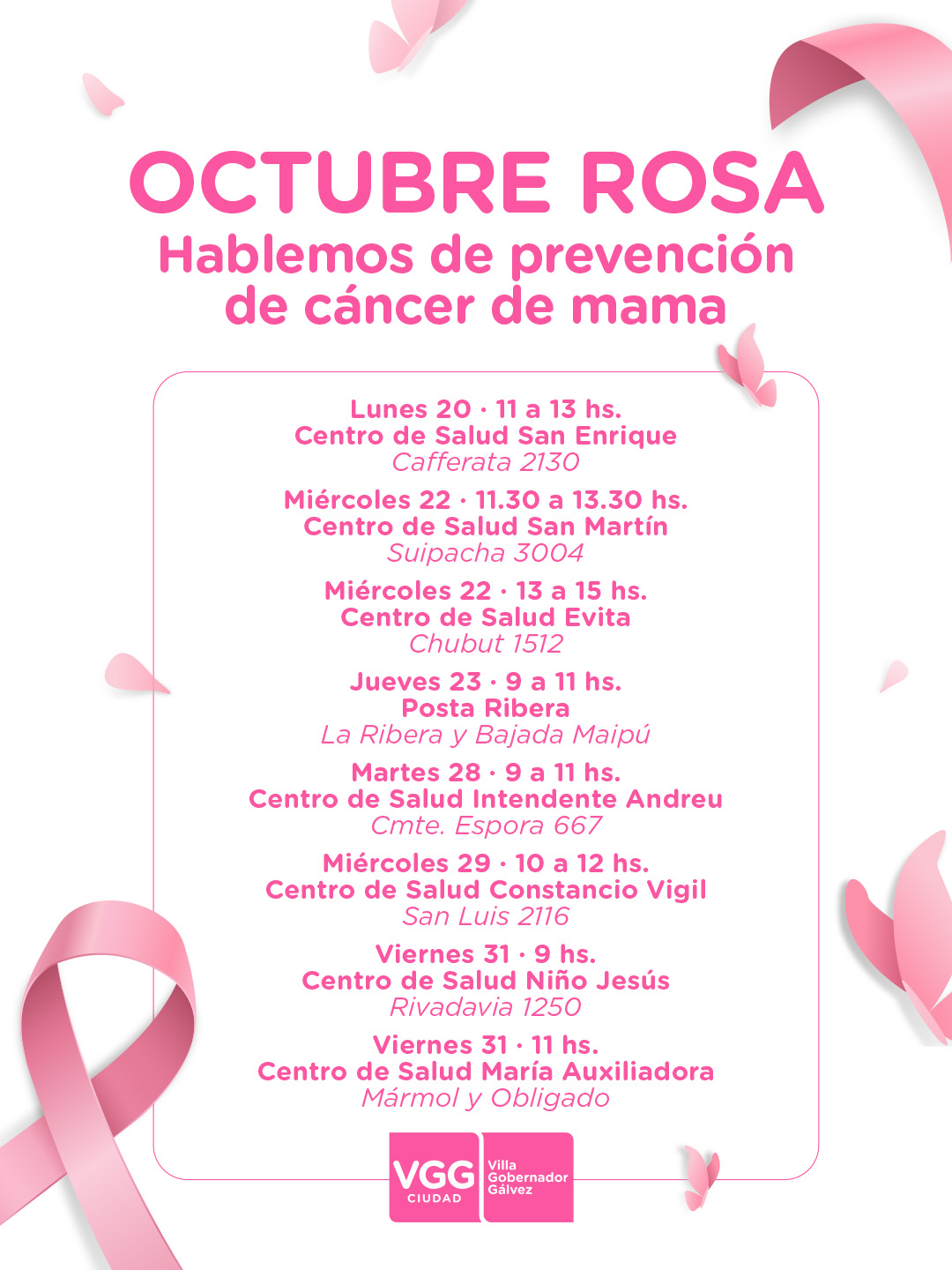 Con el fin de prevenir sobre el cáncer de mama, la municipalidad brindará 8 charlas abiertas en todos los Centros de Salud Municipales junto a especialistas. Comenzarán el 20 de octubre y se extenderán hasta el último día del mes. Esta patología, que es la forma más frecuente de cáncer en las mujeres, tiene una tasa de sobrevida de 95% cuando el diagnóstico es a tiempo. En el marco del “Octubre rosa”, mes de la prevención del cáncer de mama, el municipio lleva adelante una agenda con charlas abiertas a…