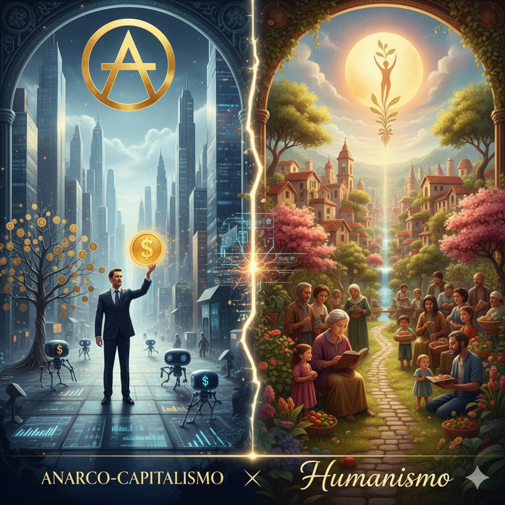¿SABE LA DIFERENCIA ENTRE EL ANARCOCAPITALISMO Y EL HUMANISMO? El anarcocapitalismo es una filosofía política y económica que aboga por la abolición del Estado y su reemplazo por un sistema de mercado libre y propiedad privada, abordando de manera distinta los aspectos de la organización social, política y ética, de una sociedad, sosteniendo que todas las funciones estatales (justicia, seguridad, defensa, infraestructura) pueden ser proporcionadas de manera más eficiente y ética por empresas privadas y organizaciones voluntarias en un mercado competitivo. Considera además la propiedad privada como un derecho natural inviolable y absoluto, como la base…
