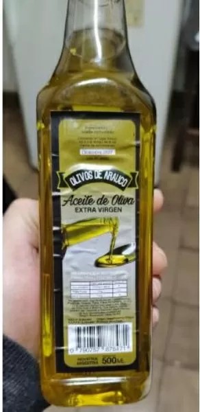 «Aceite de oliva extra virgen, marca: Olivos de Arauco, Origen: Departamento Arauco, Provincia de La Rioja, RNE N° 18000661, RNPA N° 18004900»,