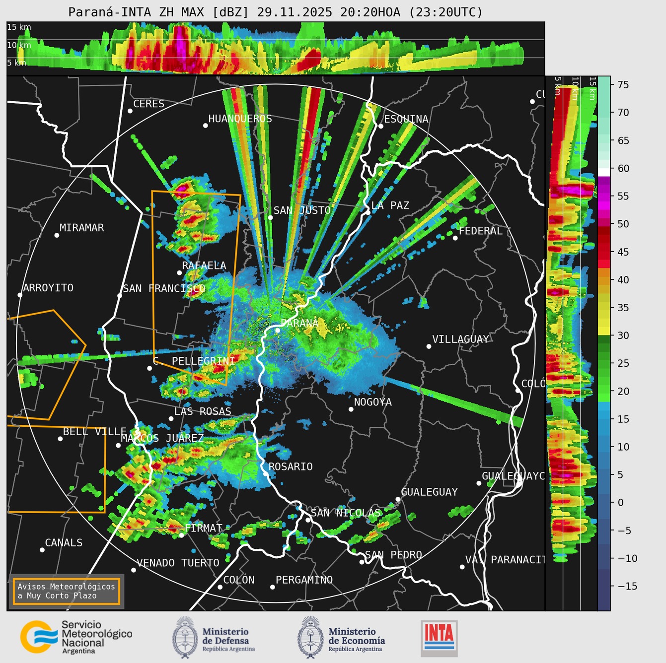 Las condiciones de inestabilidad seguirán generando tormentas de variada intensidad, que se desplazarán de manera generalizada de OESTE a ESTE. Desde esta noche de sábado 29 y hasta la mañana del lunes 1 de diciembre, la región desarrollará nubosidad con actividad eléctrica. Algunas serán de intensidad fuerte. Muy atentos a las descargas. Mayor frecuencia de rayos eleva los riesgos de chaparrones de lluvia/granizo y ráfagas fuertes. Ante fenómenos cercanos no permanecer en la intemperie. Así las cosas, nos seguimos leyendo. Oscar Monjelat -Director Grupo Caza Tormentas del Sur. Con nuestra gente, siempre!! Enlace a radares: https://www.smn.gob.ar/radar