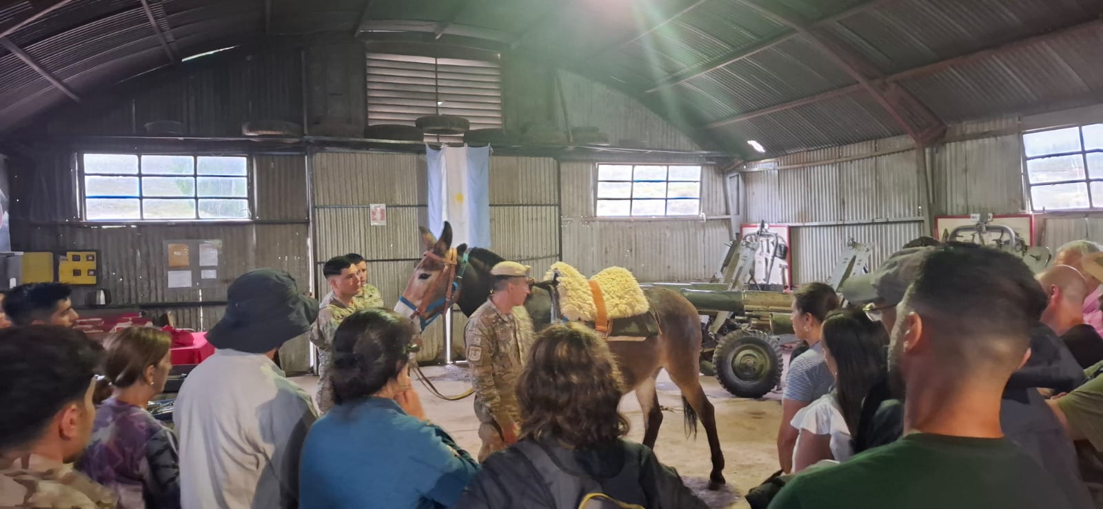 En el GAM 8, la escena se repitió con igual intensidad. Un veterano, visiblemente conmovido tras hacer sonar el bronce por sus hermanos que quedaron en las islas, fue recibido con un cálido aplauso de la formación y de los ciudadanos que acompañan esta expedición sanmartiniana.