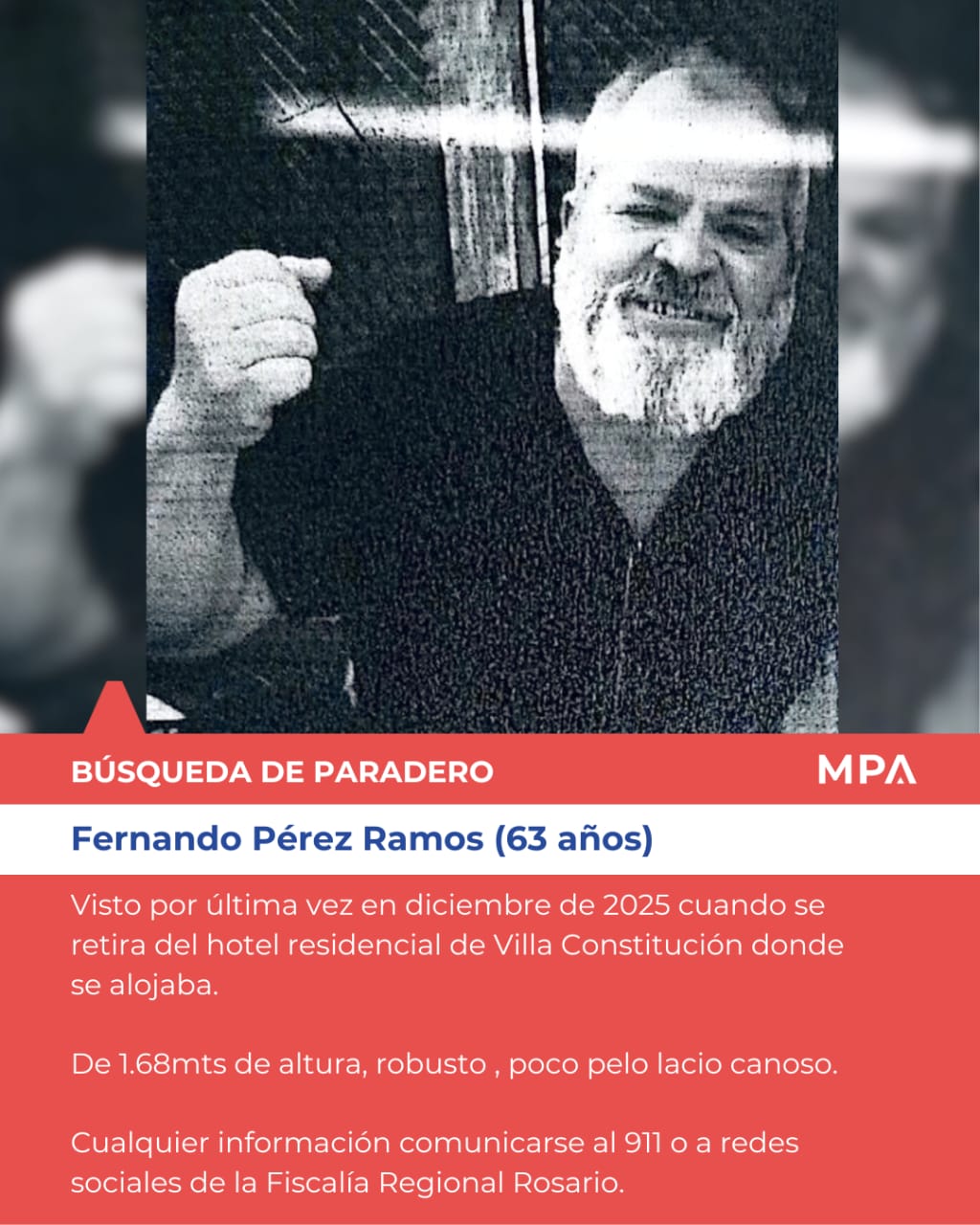 Fue visto por última vez en el mes de diciembre de 2025 cuando se retira de un hotel residencial de la ciudad de Villa Constitución donde se alojaba.