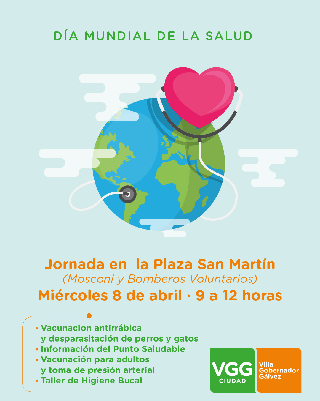 Hoy, 7 de abril, se celebra el “Día Mundial de la Salud” conmemorando la fundación de la Organización Mundial de la Salud (OMS) en 1948; y en ese marco, la municipalidad llevará adelante una jornada saludable el miércoles 8 de abril en la plaza San Martín (Mitre y Oppici).