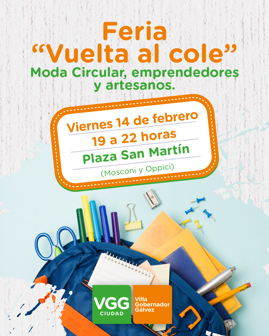 Será este viernes 14 de febrero, de 19 a 22 horas en la plaza San Martín (Mitre y Oppici). Habrá útiles y uniformes escolares a buen precio; además, estarán presentes la feria de artesanías, emprendedores y moda circular. En la previa al inicio del ciclo lectivo, la Municipalidad de Villa Gobernador Gálvez llevará a cabo una feria especial “Vuelta al cole”, donde se ofrecerán mochilas, útiles y uniformes escolares a buen precio. Será este viernes 14 de febrero desde las 19 horas en la plaza San Martín. En relación al…
